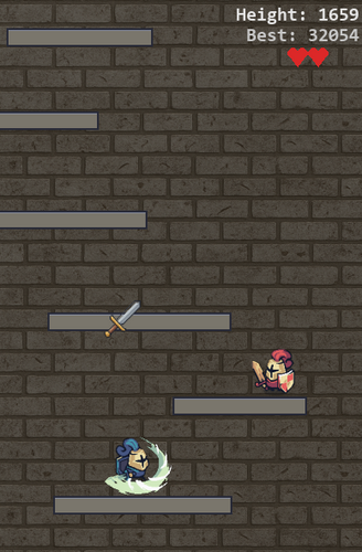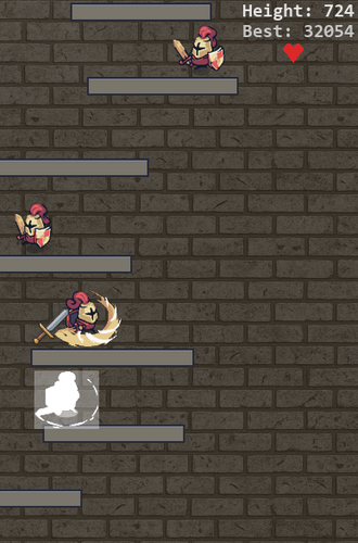 TowerKnights is a fast-paced vertical action platformer. Climb higher and higher while avoiding enemies, landing on narrow platforms, and fighting your way up with your sword.